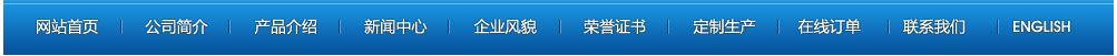 網(wǎng)站首頁(yè) | 公司簡(jiǎn)介 | 產(chǎn)品介紹 | 新聞中心 | 企業(yè)風(fēng)貌 | 榮譽(yù)證書 | 定制產(chǎn)品 | 在線訂單 | 聯(lián)系我們 | ENGLISH 【后臺(tái)管理】